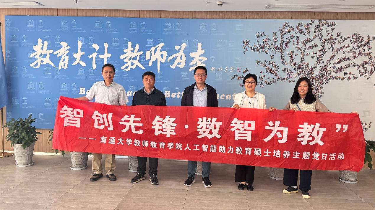 在教育数字化转型的浪潮中,人工智能正成为推动教师教育变革的核心力量。为促进党建与业务深度融合,深入贯彻落实由教育部、国家发展改革委联合印发的《关于组织实施教师教育能力提升工程的通知》的文件精神,把握人工智能助力教育高质量发展和引领科研范式变革的重大机遇,5月9日南通大学教师教育学院教职工党支部赴上海师范大学开展“智创先锋・数智为教”人工智能助力教育硕士培养主题党日活动,围绕教育新基建的前沿技术应用、教师教育模式创新,积极探索契合新时代要求的教育硕士培养新模式和人工智能赋能教师教育新样态。