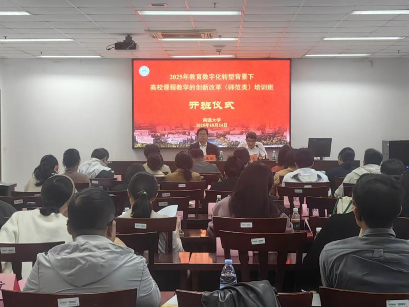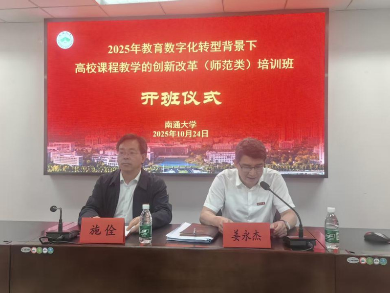 10月24日上午,由江苏省教育厅主办、南通大学教师教育学院承办的江苏省2025年教育数字化转型背景下高校课程教学创新改革(师范类)培训班开班仪式在我校图书馆110会议室举行。南通大学党委常委、副校长施佺,教师教育学院党委书记、院长、教师教育管理处处长姜永杰出席开班仪式。