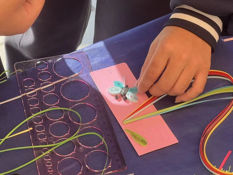 十二月的校园,银杏叶尚未落尽,冬意已悄然漫上枝头。适逢“12·5国际志愿者日”,学校举办志愿服务交流市集暨秋季释压市集,各学院纷纷亮出特色志愿项目。教师教育学院研究生会心理减压工作坊结合学院特色,选择了衍纸书签制作。衍纸技艺具备舒缓的制作过程与实用的作品价值,以书签作为媒介,不仅轻巧易携,还能书写温情祝福,作为礼品赠予好友。