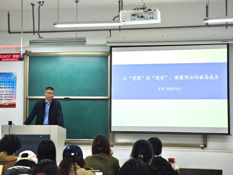 为帮助教育硕士明晰教师职业发展前景、掌握教学教研核心能力、从容应对从教挑战,4月21日晚,南通大学教师教育学院 “兴学讲堂”系列讲座二在38号楼302教室顺利举办。本次讲座特邀许昌市建安区第一高级中学副校长、中原名师、教育部中小学学科领军教师李哲主讲,主题为“从‘理想’到‘现实’:新教师如何破局成长”,学院相关专业学生到场聆听学习。